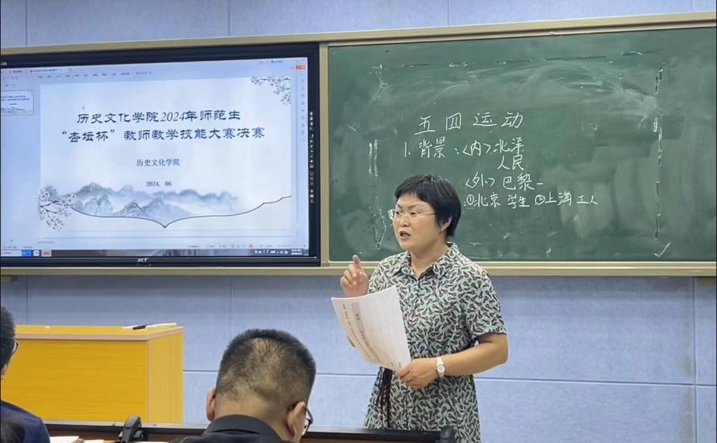 为提高历史学师范生教育教学技能,更新教学理念,提高综合素质和实践能力,6月11日下午,suncitygroup太阳新城在人文楼706教室举办了2024年师范生“杏坛杯”教师教学技能大赛决赛。宋基中学青年教师温二虎,学院副院长孙炜、李志坚,任课老师张乐锋、李海霞、张珍珍等6名教师担任评委,8位同学参赛,2023级本科生到场观摩了此次比赛。