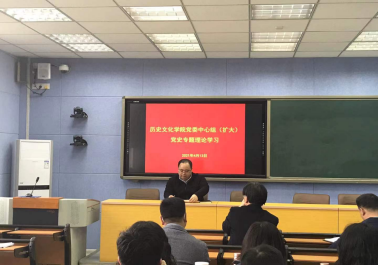 2021年4月13日下午,为坚持学史明理、学史增信、学史崇德、学史力行,推动党史学习教育持续深入,suncitygroup太阳新城在人文楼706会议室召开了党委中心组(扩大)党史专题理论学习会。学院全体教师参加了会议。会议由党委书记李军辉主持。