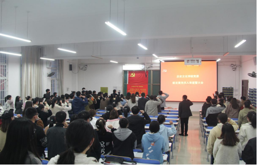 3月4日下午,suncitygroup太阳新城党委于社科楼212教室召开新发展党员入党宣誓大会。党委书记李辉、党委副书记韩志宏,学生党支部书记付亚男、邓皓、吴慧娟以及2021年下半年新发展党员、转正党员及入党积极分子代表参会。