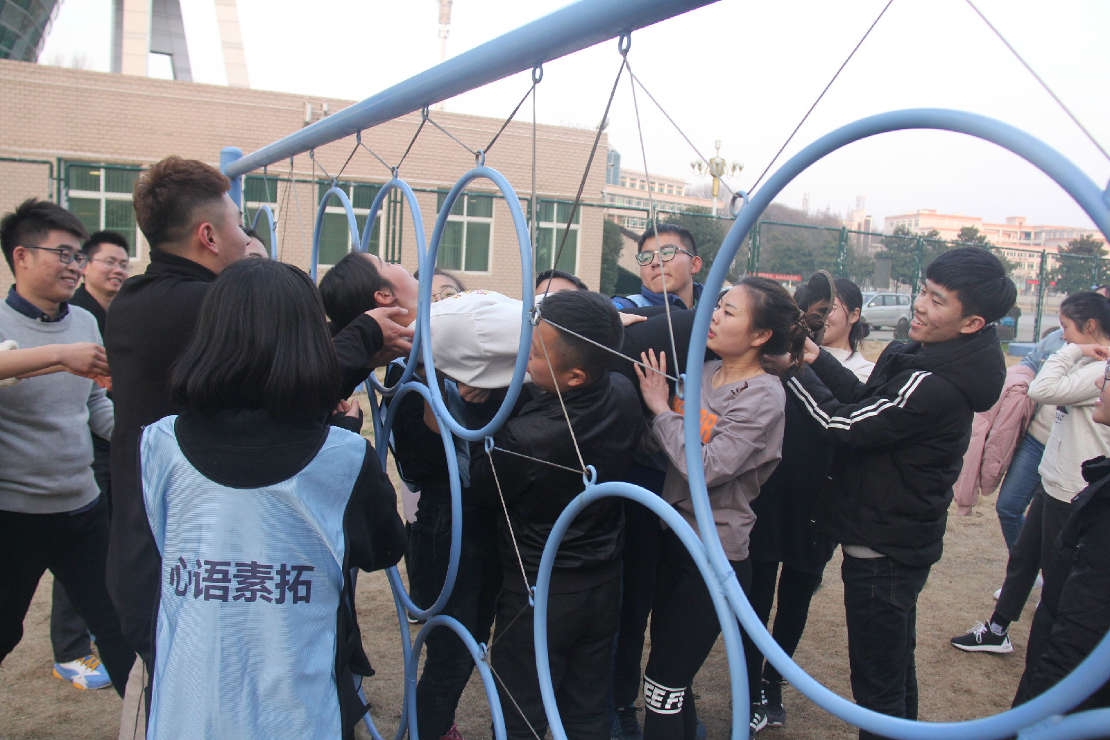 12月21日,在团委老师王道歆的带领下,suncitygroup太阳新城团学干部在心语拓展园参加了大学生素质拓展活动。