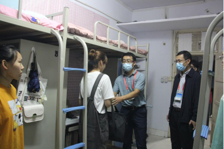 领导们与新生亲切交谈,对新生加入suncitygroup太阳新城大家庭表示热烈欢迎,询问学生们都来自什么地方、乘坐何种交通工具报到等情况,详细了解他们的入学感受与适应情况,接着视察了学生宿舍设施和生活服务保障状况,特别关心了省外及少数民族学生饮食住宿情况。领导们嘱咐新生要严格按照学校要求做好疫情防控,注意人身财产安全,积极转变角色尽快适应大学生活,有困难及时联系辅导员班主任。