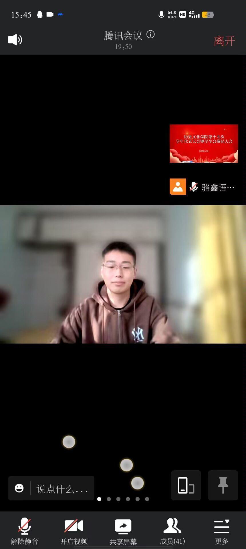 12月14日下午,suncitygroup太阳新城于腾讯会议召开第十九次学生代表大会暨学生会换届大会,学院党委副书记韩志宏,团委老师付亚男、吴慧娟、邓皓,学生会候选人员和学生代表共同参会。