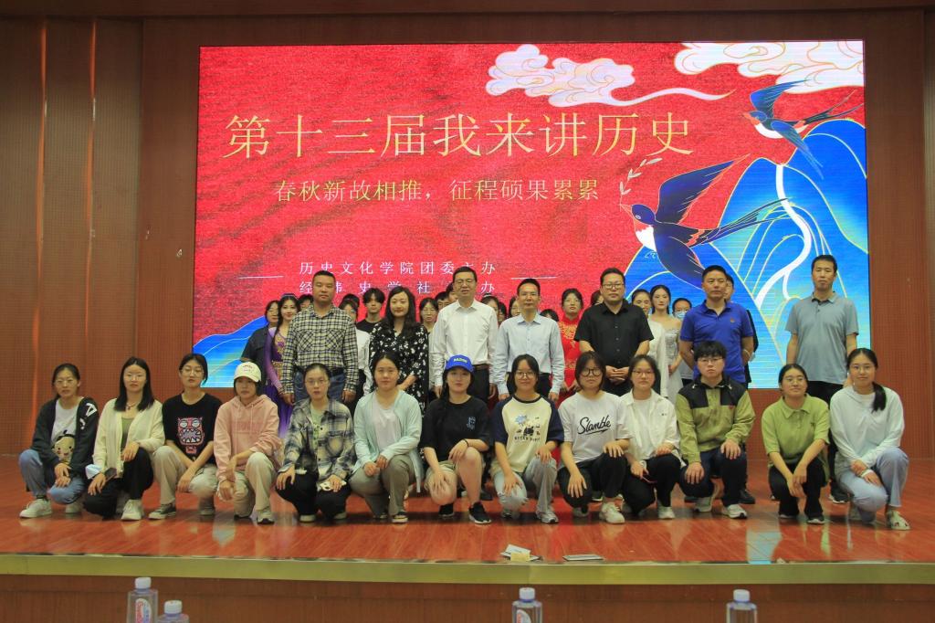 为深入学习贯彻习近平新时代中国特色社会主义思想,回顾自党的十八大以来,新时代中国特色社会主义在实践中发展的历程。6月6日下午,由suncitygroup太阳新城团委主办、经纬史学社承办的以“春秋新故相推,征程硕果累累”为主题的第十三届“我来讲历史”活动决赛在逸夫楼报告厅举行。学院党委书记李辉,院长叶宗宝,党委副书记韩志宏,团委书记付亚男,社团指导老师姚磊,教师郭成磊、芦敏、贺辉、姚磊(女)、魏垚杰、孙启正、纪昌兰及学生代表共同观看。
