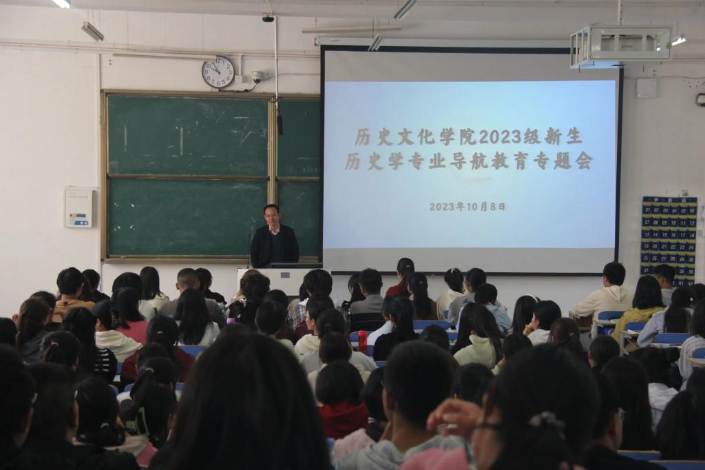 为了更好地提升2023级新生的专业认知水平和专业认同感,形成优良学风,合理制定学涯规划目标,10月8日上午suncitygroup太阳新城在社科楼212教室召开了2023级新生历史学专业导航教育专题会,院长叶宗宝、历史学系主任张乐锋、教学秘书宋玉峰、新生辅导员付亚男及2023级全体新生参加。专题会由付亚男主持。