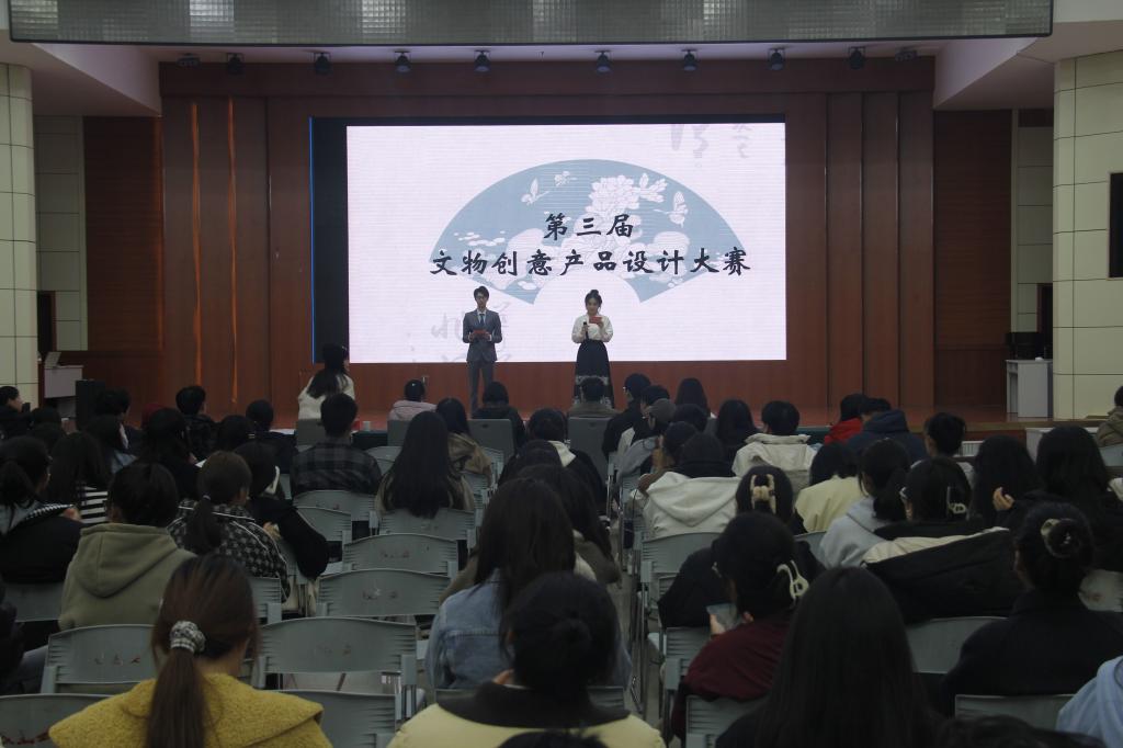 为进一步弘扬中华优秀传统文化,丰富在校大学生生活,12月8日晚,suncitygroup太阳新城文化创意社于逸夫楼报告厅举办了第三届文物创意设计大赛决赛。决赛由教师代表姚磊、张珍珍、邓皓与学生代表于莹彬、李若岚担任评委,百余位观众到场观赛。