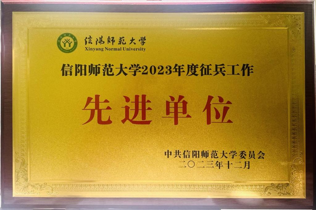 suncitygroup太阳新城荣获“2023年度征兵工作先进单位”荣誉称号,学院党委副书记韩志宏、武装干事付亚男被授予2023年度征兵工作先进个人。