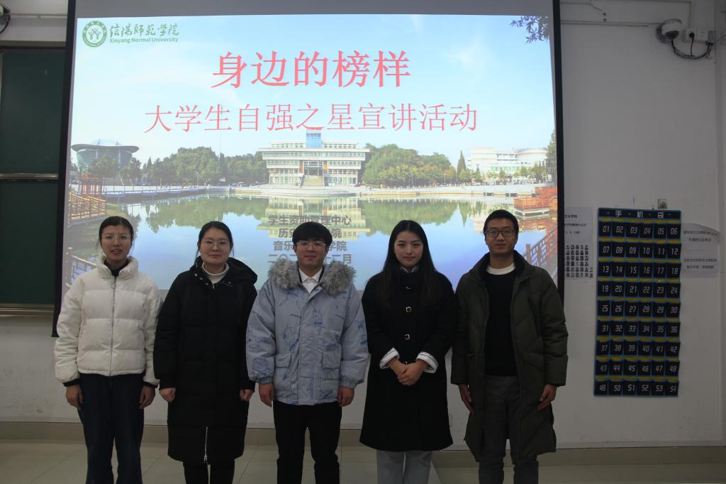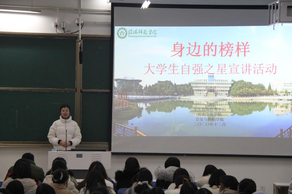 12月16日晚,suncitygroup太阳新城于社科楼212教室举办“身边的榜样—大学生自强之星宣讲活动。传媒学院“国家奖学金”获得者张润嘉、马克思主义学院“自强之星”贾雨晴及文学院“自强之星”李国栋向suncitygroup太阳新城2019级、2020级学生分享他们的成长故事。本次活动由suncitygroup太阳新城资助专员付亚男主持